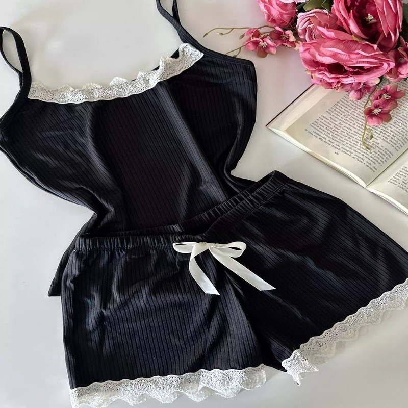 Baby Doll Canelado Preto